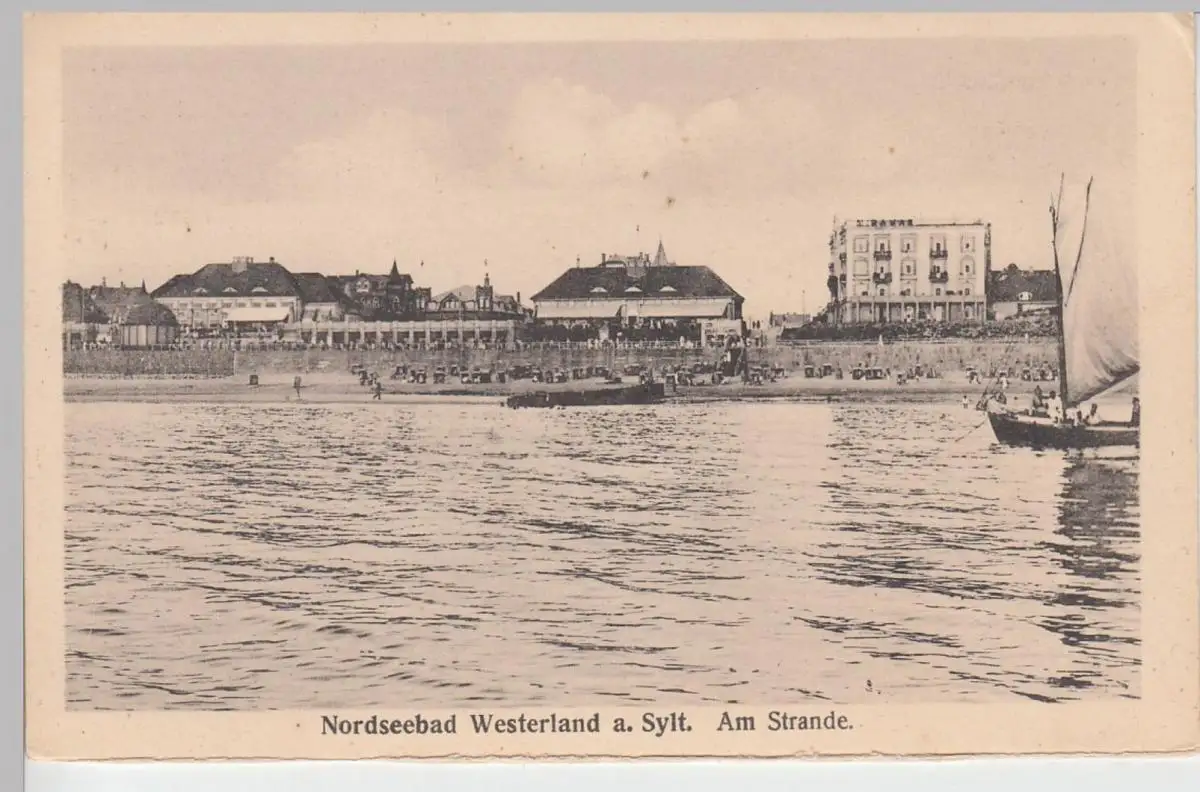 - (104167) Ansichtskarte, postcard, PPC - Westerland auf Sylt, Am Strande, aus Leporello, 1920/30er