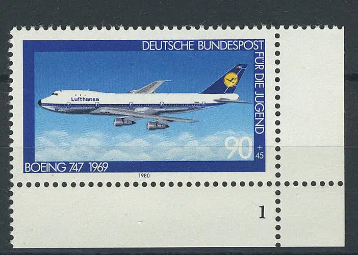 1043 Jugend Luftfahrt 90+45 Pf ** FN1