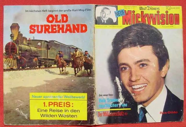 (1044375) Walt Disneys MICKYVISION Nr. 2 / 1966. Rennfahrer Michael Voss. Ehapa-Verlag # Walt Disney Ehapa-Verlag, Stuttgart 1966. Komplettes Originalheft. Mit Beitraegen ueber Rex Gildo, Karl May "Old Surehand", Porsche 911, u. a. ... Im Comic-Katalog No. 33 notiert fuer Zustand 1-2-3 : 20,00 / 8,00 / 4,00 / Zustandsbeschreibung siehe bitte die nachfolgenden Original-Scans. Nach meiner Einschaetzung : Komplettes Heft mit staerkeren Gebrauchsspuren # Comic # Bilderhefte # Walt Disney