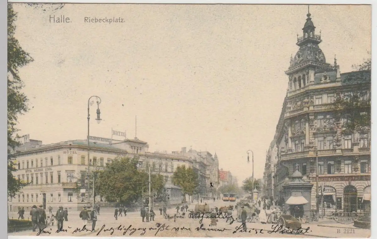 - (104756) Ansichtskarte, postcard, PPC - Halle a.S., Riebeckplatz, 1909