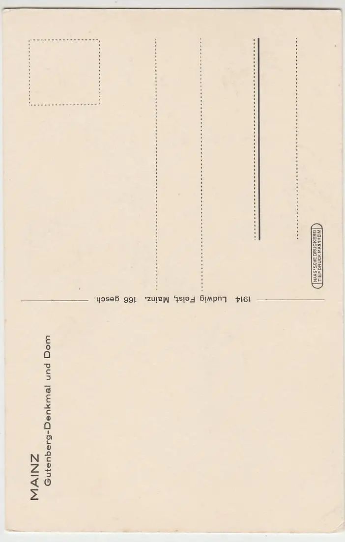 - (104997) Ansichtskarte, postcard, PPC - Mainz, Gutenberg-Denkmal und Dom, 1914