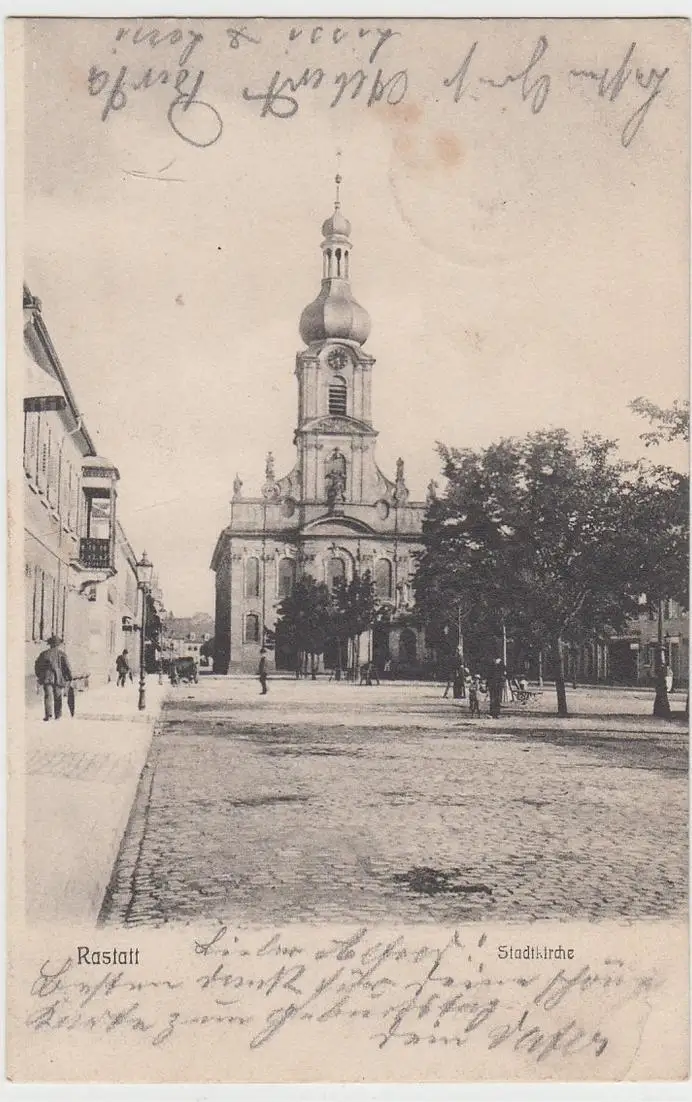 - (105035) Ansichtskarte, postcard, PPC - Rastatt, Stadtkirche 1905