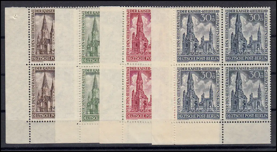 106-109 Gedächtniskirche 1953 - Eckrand-Viererblock unten links, ungefaltet, **