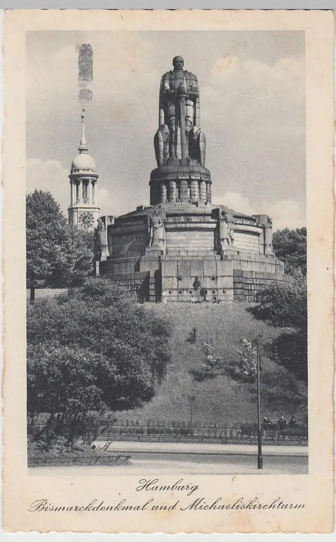 - (106115) Ansichtskarte, postcard, PPC - Hamburg, Bismarckdenkmal, Michaeliskirche, Feldpost 1942