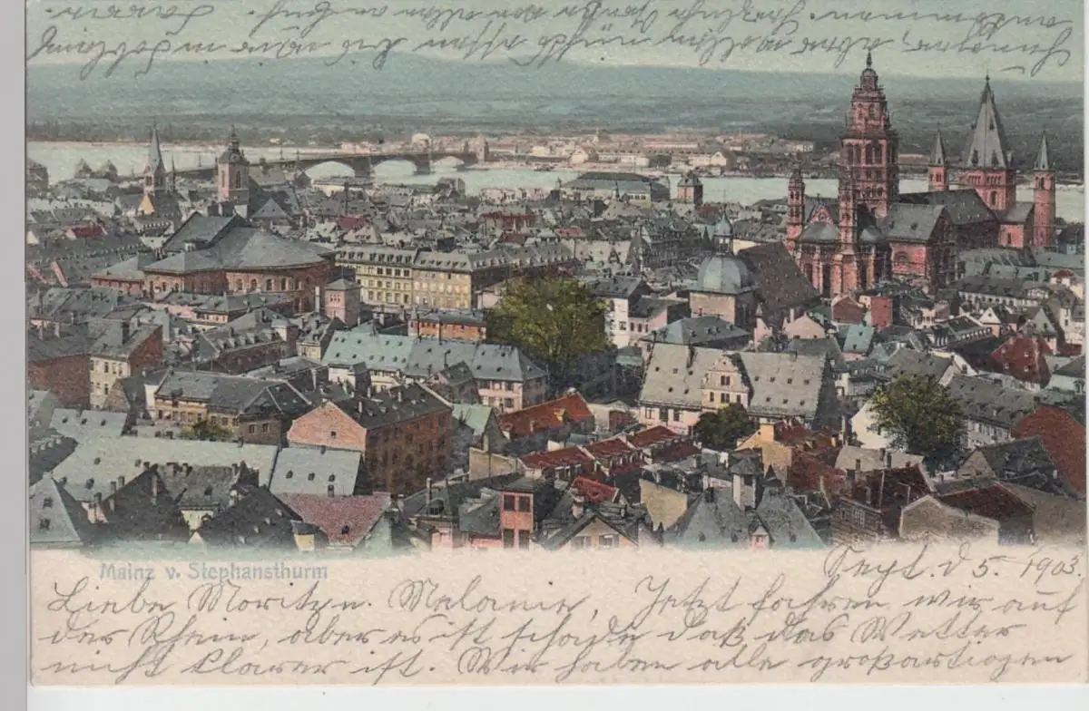 - (106702) Ansichtskarte, postcard, PPC - Mainz, Blick vom Stephansturm, 1903