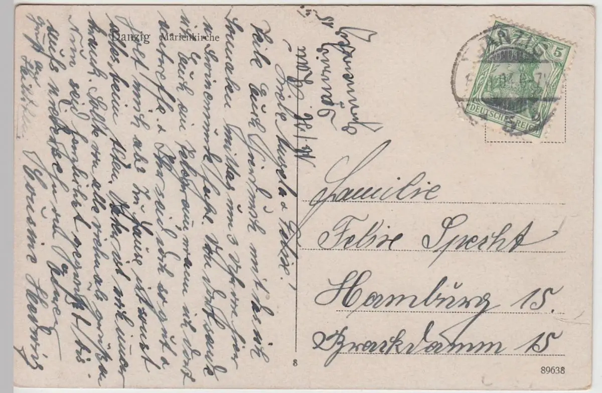 - (107607) Ansichtskarte, postcard, PPC - Danzig, Gdansk, Marienkirche 1904