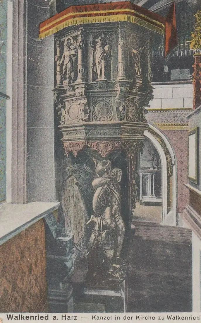 - (108137) Ansichtskarte, postcard, PPC - Walkenried am Harz, Kanzel in der Kirche, vor 1945