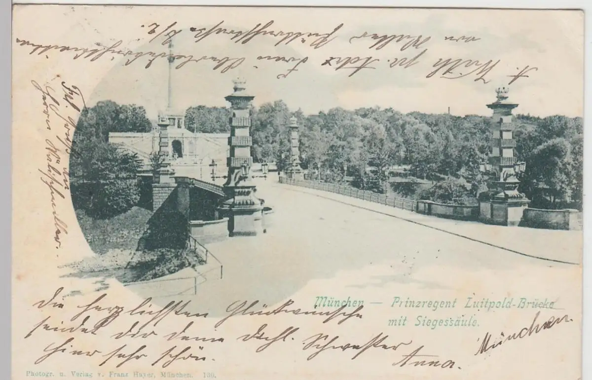 - (108339) Ansichtskarte, postcard, PPC - München, Prinzregentenbrücke, Siegessäule 1900