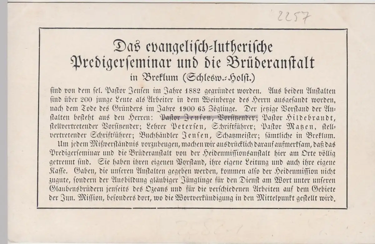 - (108349) Ansichtskarte, postcard, PPC - Breklum, Martineum, vor 1945
