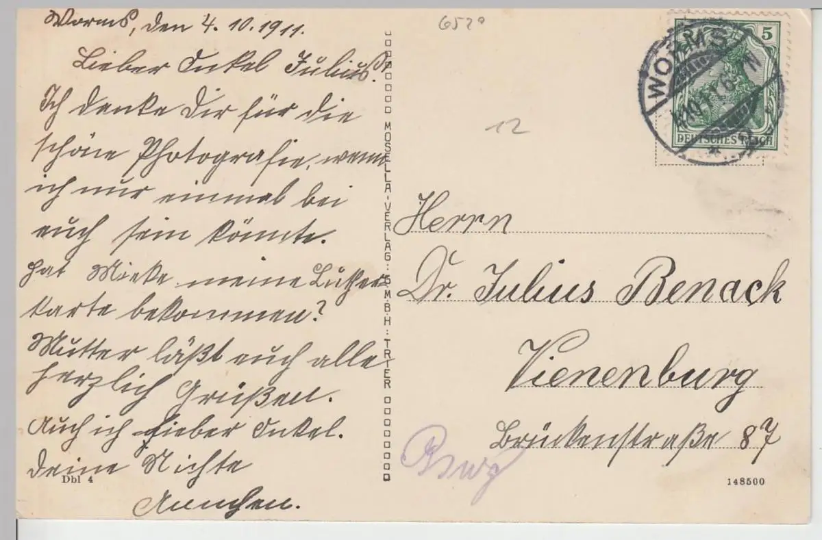 Diese Postkarte wurde von meinem Opa geschrieben und versendet. Ein Stück Erinnerung von fast 100 Jahren