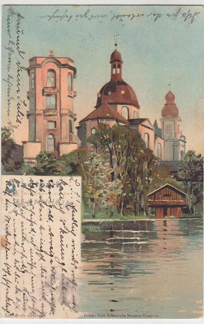 - (109024) Künstler Ansichtskarte, postcard, PPC - Mannheim, Stadtpark mit Sternwarte 1900