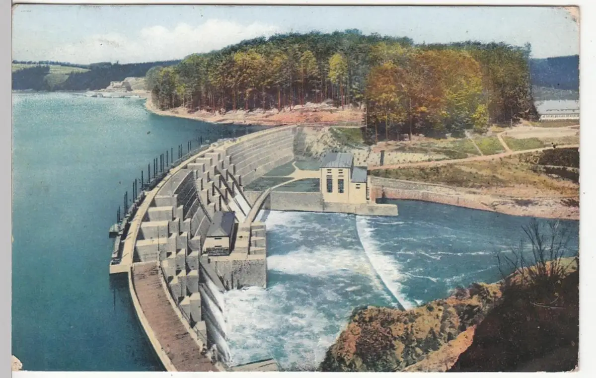 - (109532) Ansichtskarte, postcard, PPC - Talsperre Kriebstein, Staumauer 1934