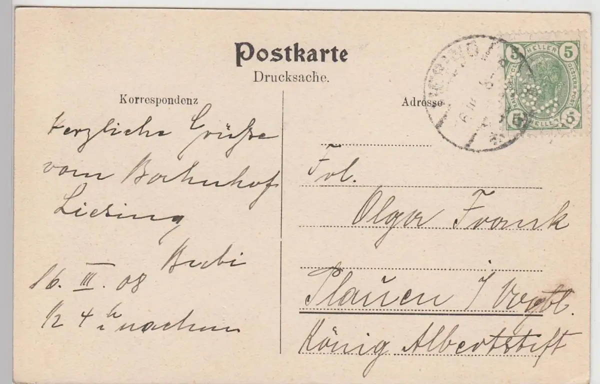 - (109853) Ansichtskarte, postcard, PPC - Liesing, Wien, Ortsansicht 1908