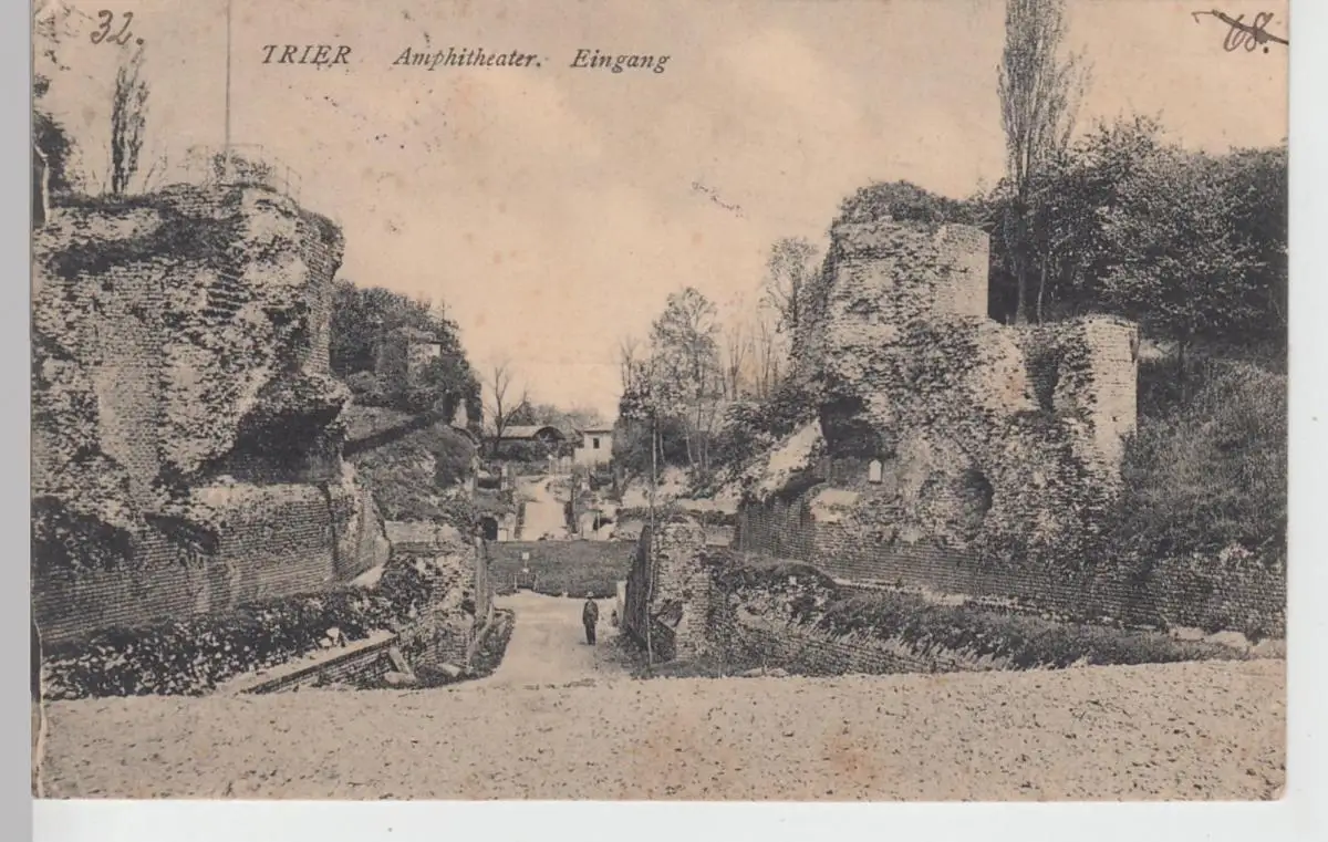 - (109960) Ansichtskarte, postcard, PPC - Trier, Amphitheater, Eingang, Feldpost 1916
