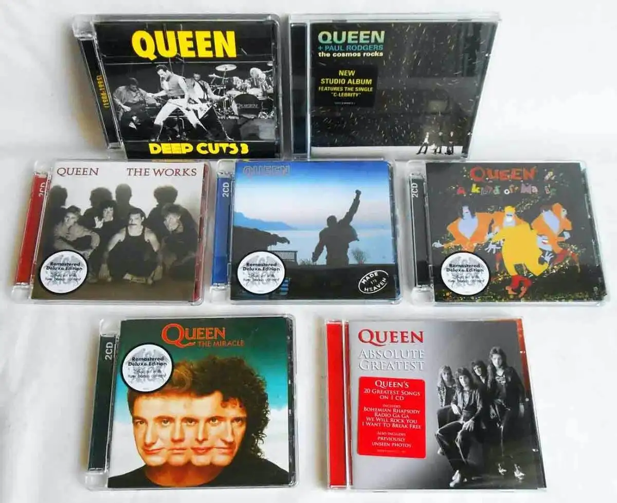 11 CD´s Queen - Sammlung - 2CD The Miracle (Remastered Deluxe Edition with new bonus content)  (Queen) 20112CD Made in Heaven (Remastered Deluxe Edition with new bonus content)  (Queen) 20112CD The Works (Remastered Deluxe Edition with new bonus content)  (Queen) 20112CD Kind Of Magic (Remastered Deluxe Edition with new bonus content)  (Queen) 2011Deep Cuts 3 (Queen) 2011Absolute Greatest (Parlophone) 2009The Cosmos Rocks - New Album Queen with Paul Rodgers (Parlophone) 2008