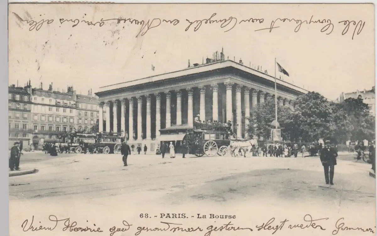 - (110152) Ansichtskarte, postcard, PPC - Paris, la Bourse, Börse, Pferdekutschen 1904