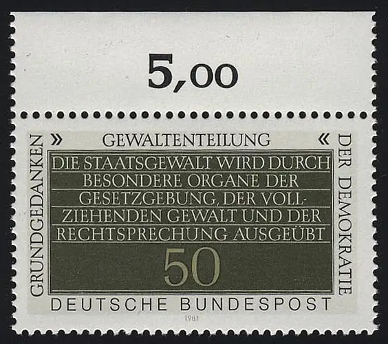 1106 Demokratie 50 Pf Gewaltenteillung ** Oberrand