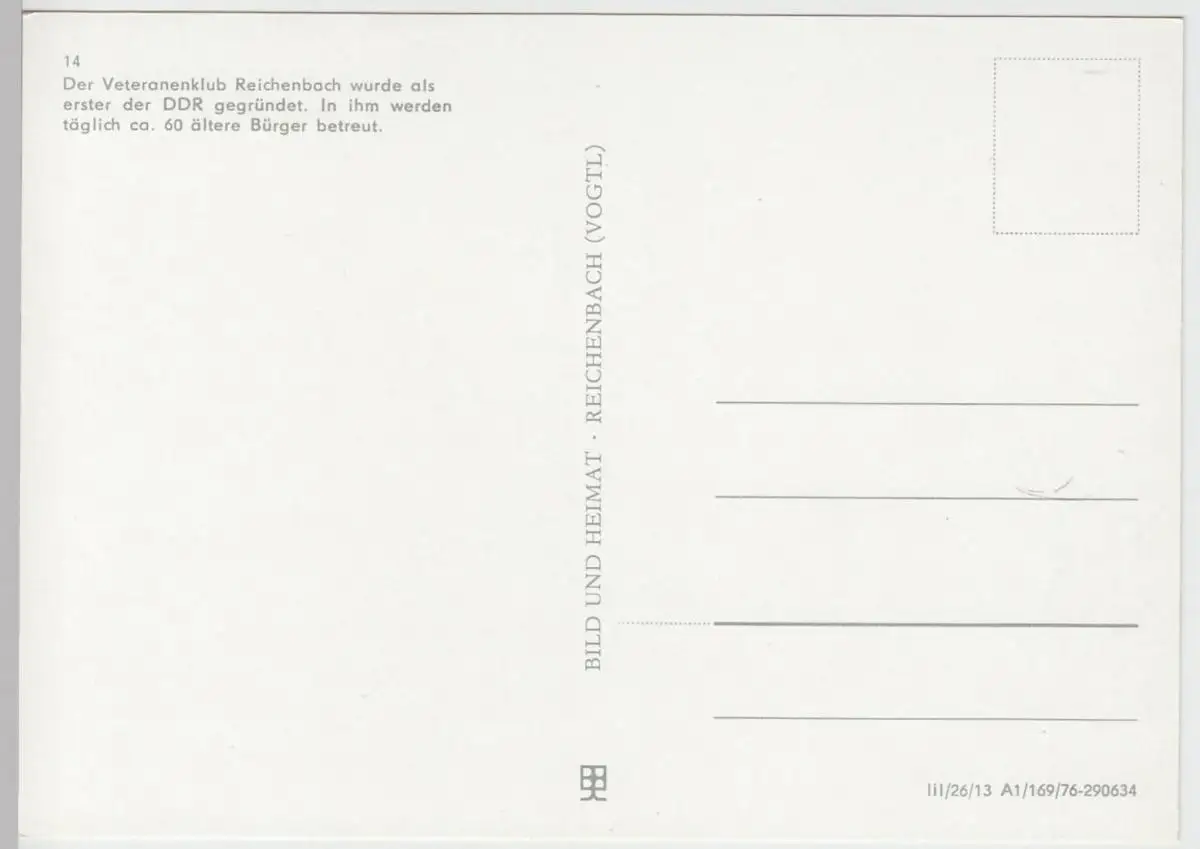 - (110757) Ansichtskarte, postcard, PPC - Reichenbach i.V., Veteranenklub 1976