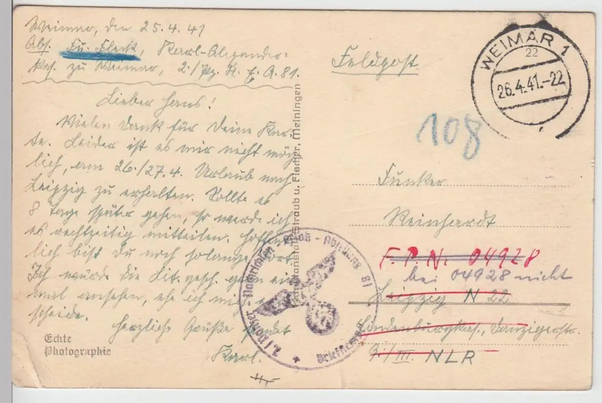 Diese Postkarte wurde von meinem Opa geschrieben und versendet. Ein Stück Erinnerung von fast 100 Jahren