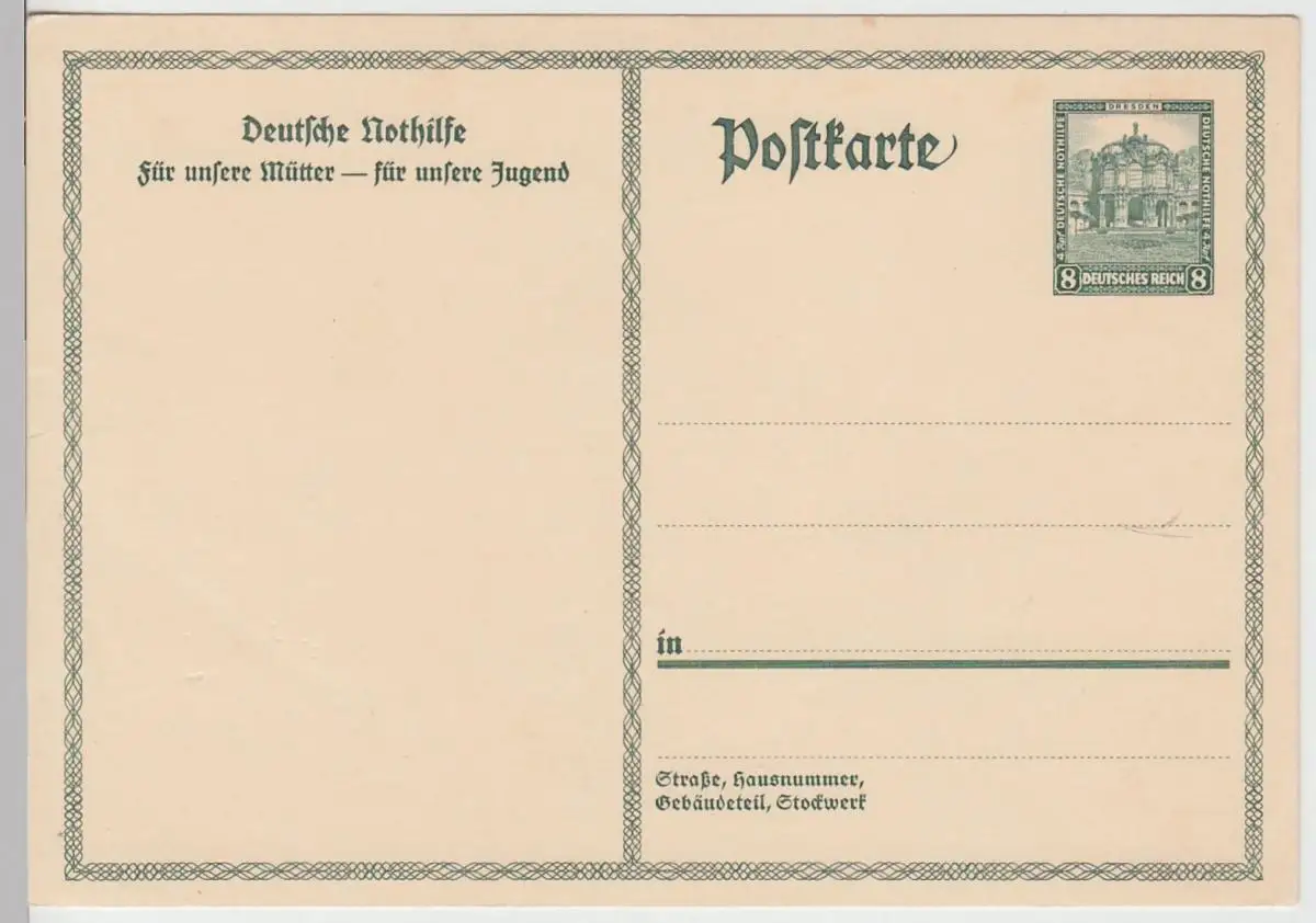 (111251) Ganzsache Deutsche Nothilfe Dresden 1931 blanko