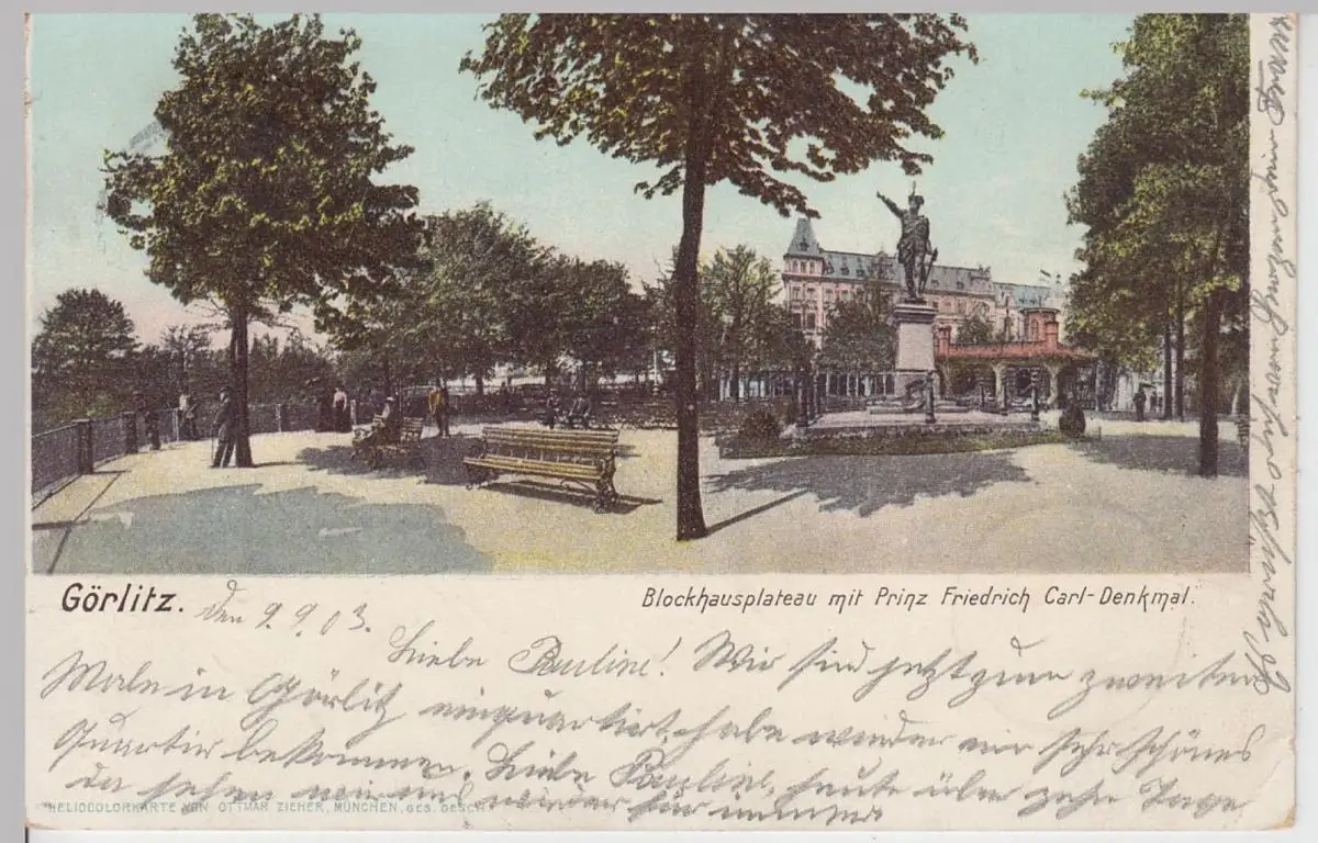 (111711) AK Görlitz, Blockhausplateau, Prinz Friedrich Carl Denkmal 1903