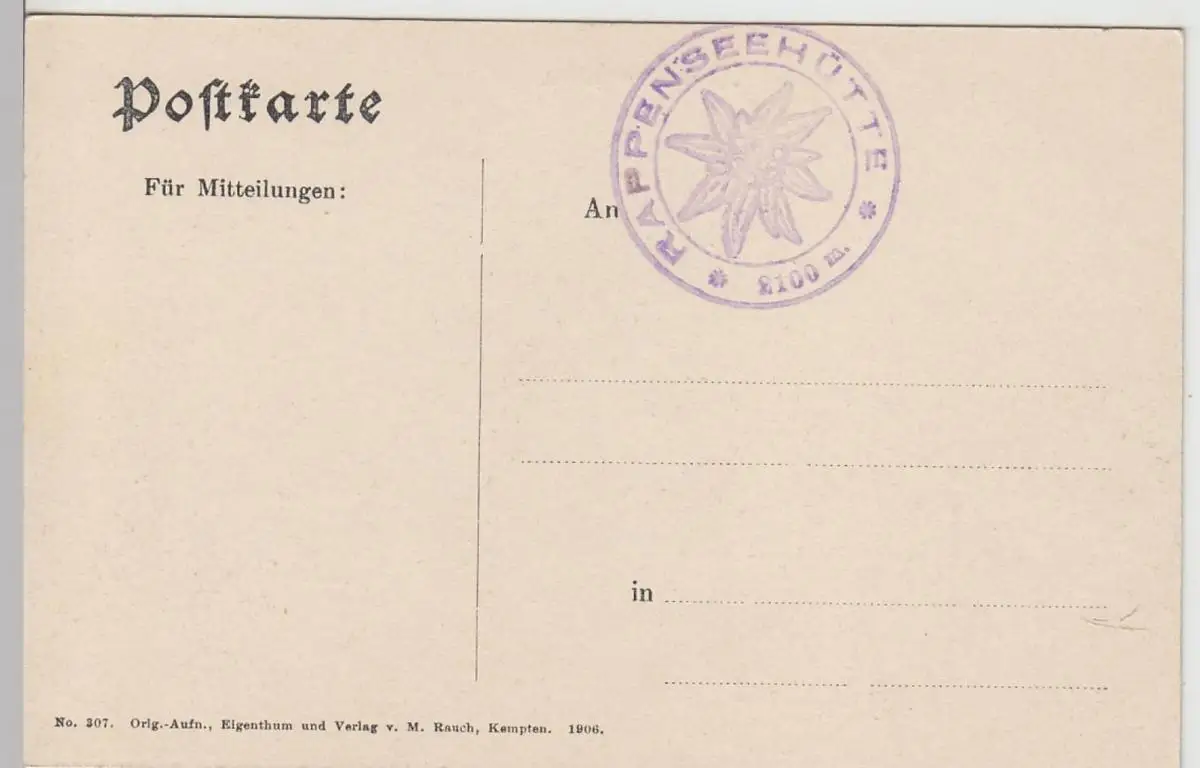- (112353) Ansichtskarte, postcard, PPC - Kemptner Hütte, um 1906