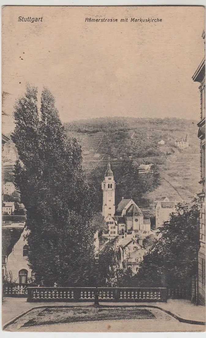 (112405) AK Stuttgart, Römerstraße, Markuskirche 1909