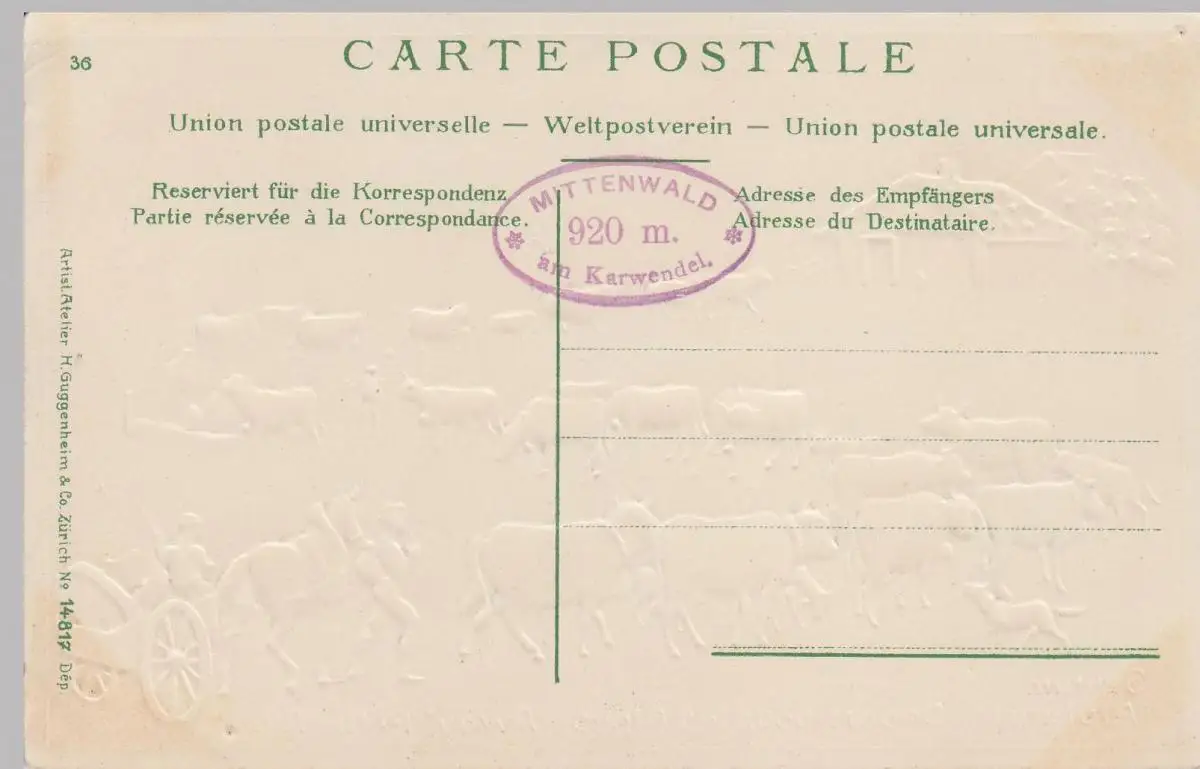 - (113367) Künstler Ansichtskarte, postcard, PPC - Sentum, Alpfahrt, Almauftrieb, Prägekarte, vor 1945