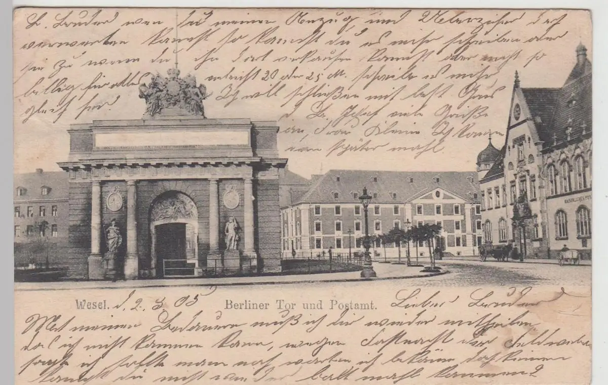 - (113493) Ansichtskarte, postcard, PPC - Wesel, Berliner Tor, Postamt 1905