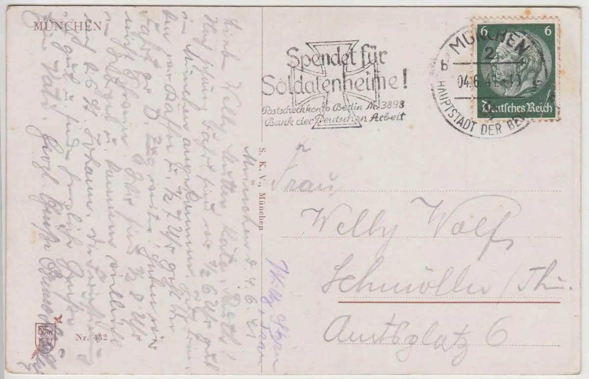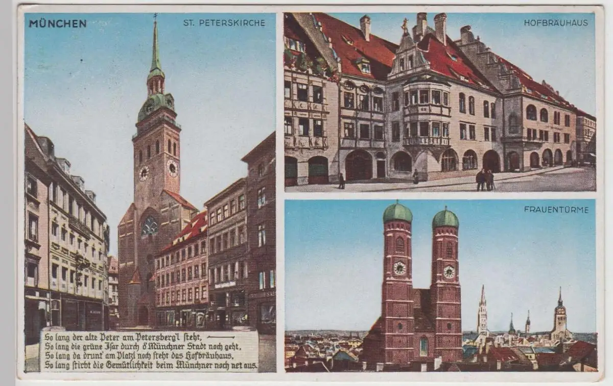 - (113874) Ansichtskarte, postcard, PPC - München, St. Peterskirche, Hofbräuhaus, Frauenkirche 1941