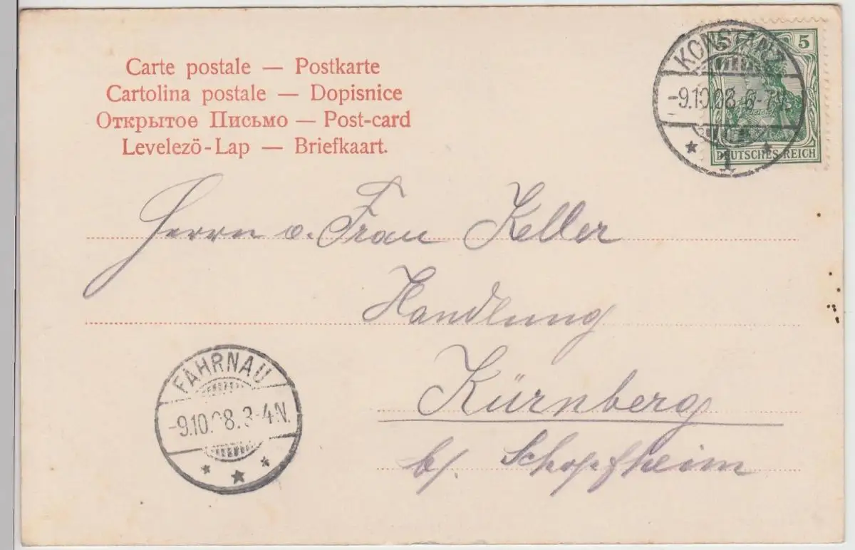 - (114918) Ansichtskarte, postcard, PPC - Konstanz, Schnetzthor 1908