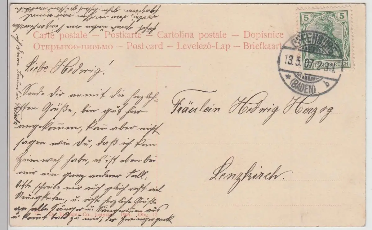 - (115055) Ansichtskarte, postcard, PPC - Gruss aus Offenburg, 1907