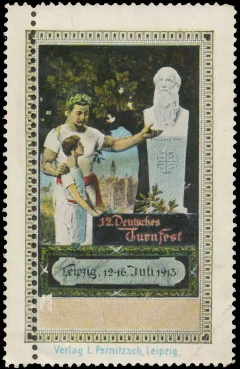 Ludwig Jahn, Sport, Größe/Zustand: 7x5 , Fehldruck, beschädigt, Original alte Reklamemarke die seinerzeit für die Werbung benutzt wurde