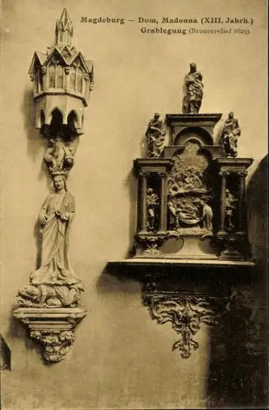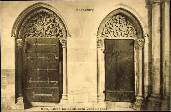12 alte Ak Magdeburg an der Elbe, Der Magdeburger Dom, verschiedene Innenansichten