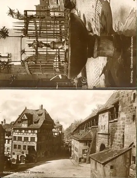 Wenn einer Deutschland kennen und Deutschland lieben soll, wird man ihm Nürnberg nennen, der edlen Künste voll, die nimmermehr veraltet, die treue fleißundamp;#39;ge Stadt, wo Dürers Kraft gewaltet und Sachs gesungen hat. M. v. Schenkendorf. Die Karten sind nicht verschickt worden, alle Karten sind in einem sammelwürdigen Zustand, einige mit Eckknick, leichten Flecken oder anderen Gebrauchsspuren. Konvolut.