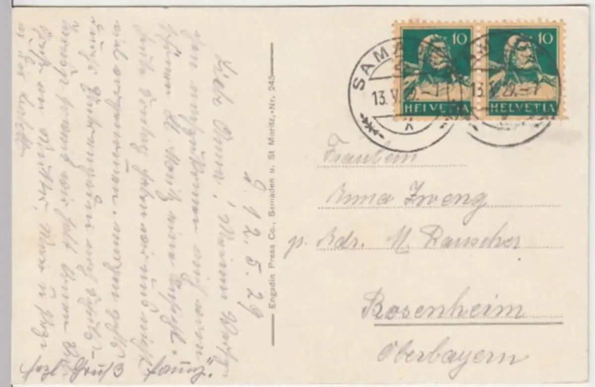 - (12033) Ansichtskarte, postcard, PPC - St. Moritz, Bad, Dorf, Panorama 1929