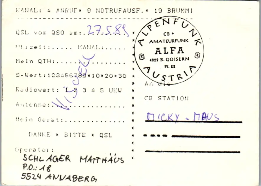 12050 - QSL - CB , Österreich , Annaberg , Sigma Delta