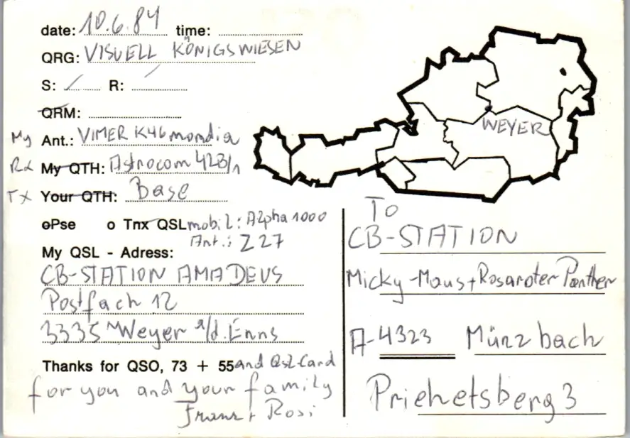 12073 - QSL - CB , Österreich , Weyer , Amadeus , Gelbe Rose