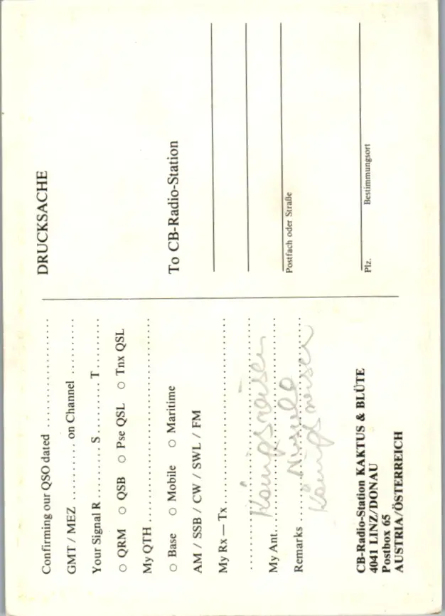 12122 - QSL - CB , Österreich , Linz , Kaktus & Blüte