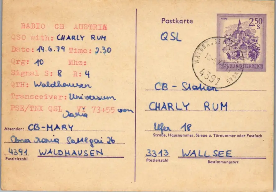 12163 - QSL - CB , Österreich , Waldhausen , CB Mary