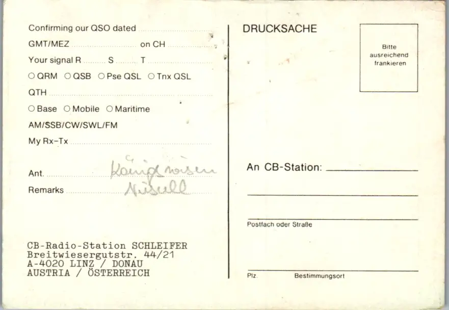 12258 - QSL - CB , Österreich , Königswiesen , Linz , Schleifer