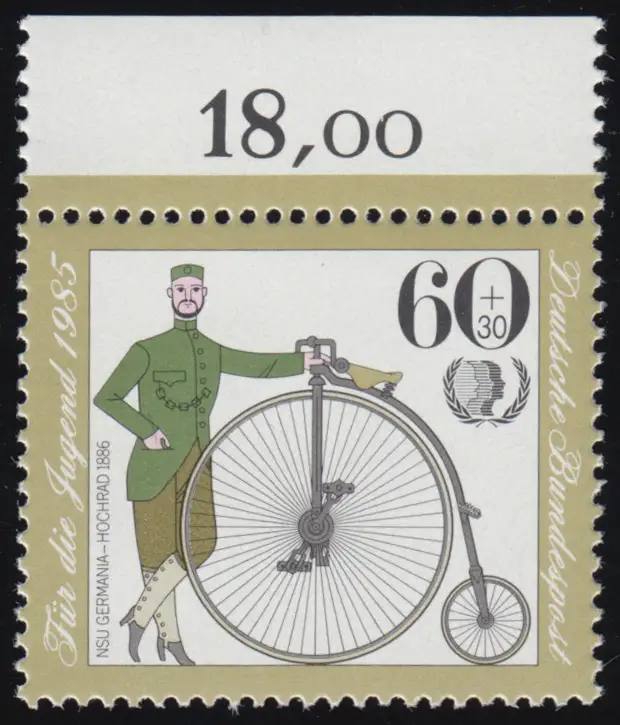 1243 Jugend Historische Fahrräder 60+30 Pf ** Oberrand