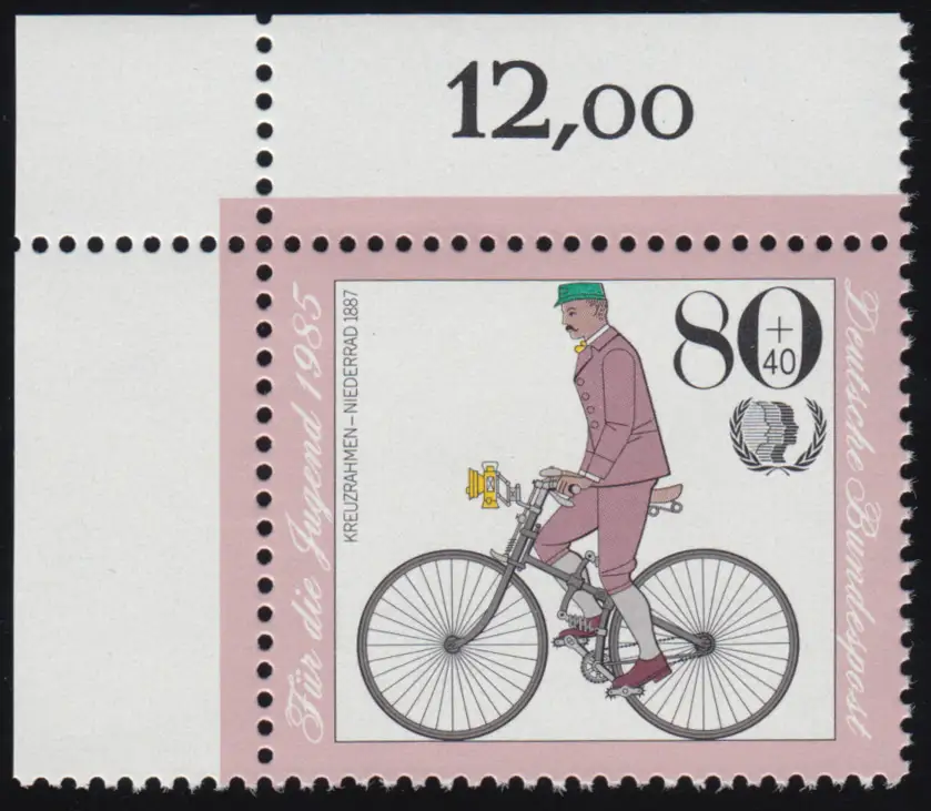 1244 Jugend Historische Fahrräder 80+40 Pf ** Ecke o.l.