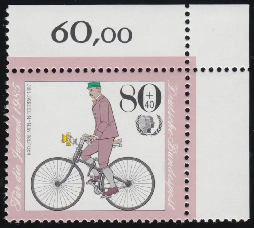 1244 Jugend Historische Fahrräder 80+40 Pf ** Ecke o.r.