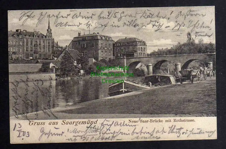 128510 AK Saargemünd Sarreguemines Neue Saar Brücke mit Rothstrasse 1903