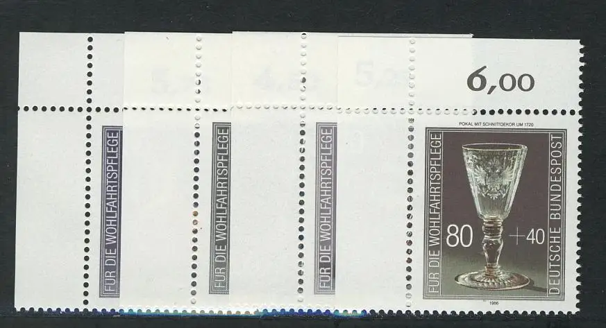 1295-1298 Wofa Gläser 1986, Ecke o.l. Satz **