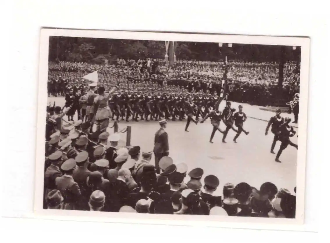 Freie Beschreibung: DT- Reich (009550) Propaganda Sammelbild, 13 Historische Tage 1937, Serie 8 Bild 137 In schneidigen Paradeschritt maschi