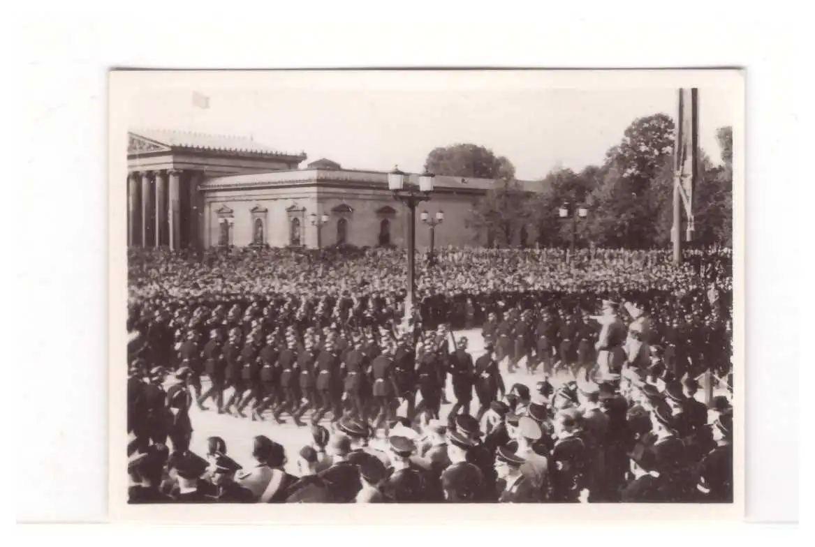 Freie Bezeichnung: DT- Reich (009573) Propaganda Sammelbild, 13 Historische Tage 1937, Serie 8 Bild 138 Der Führer und Musselini nehmen auf