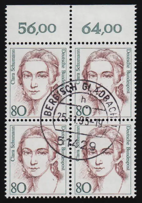 1305 Frauen 80 Pf OR-Viererbl. Tages-O