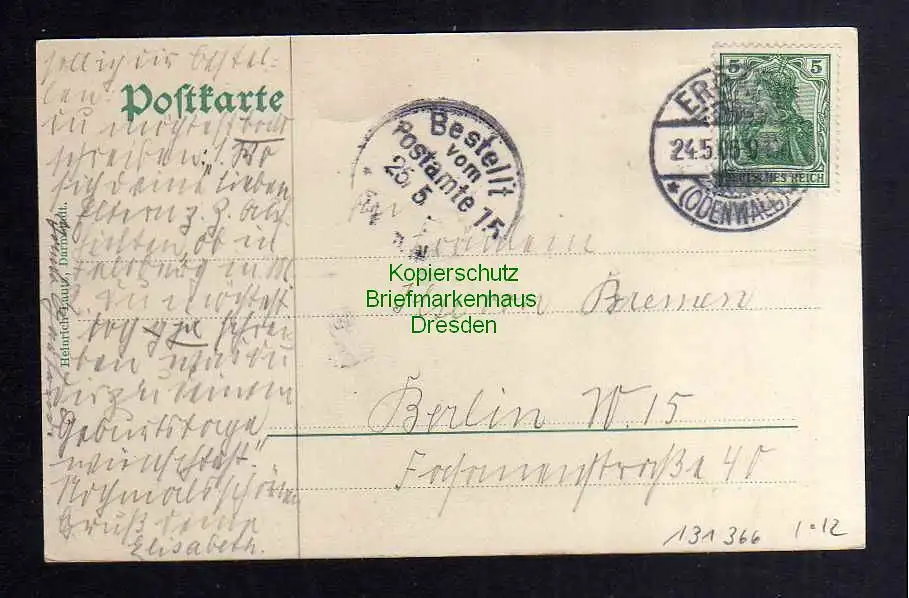 131366 Ansichtskarte Erbach i. Odenwald Rathaus Kirche 1905